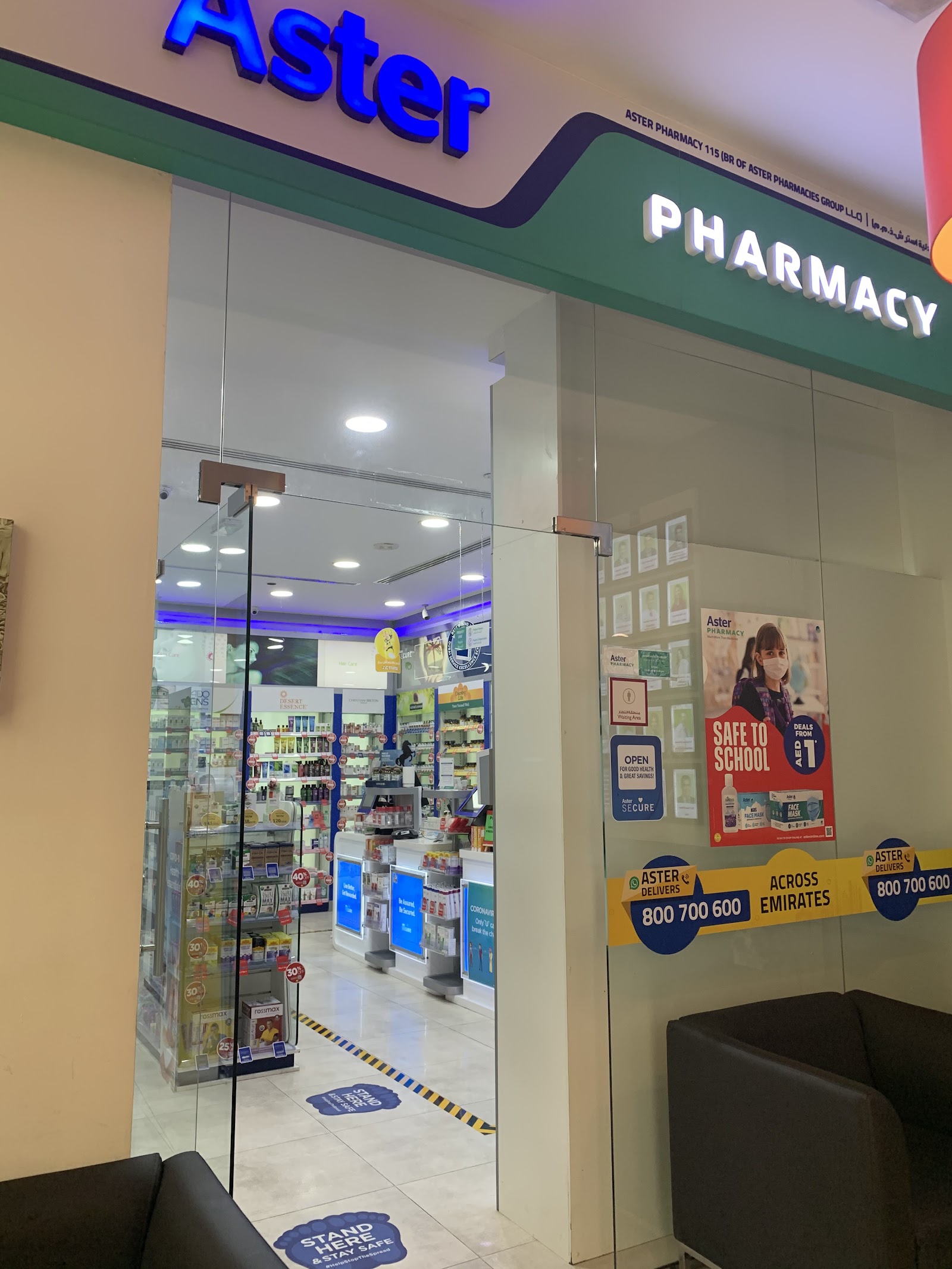 Aster Pharmacy 115 is a DHA-licensed community pharmacy at the Pavilion Mall, Discovery Gardens, Jebel Ali Village, Dubai. It provides prescription medication dispensing and carries over-the-counter health products, vitamins, and personal care essentials for Discovery Gardens residents. Trained pharmacists are available to advise on medications and interactions. Insurance prescription claims are processed at the counter. Part of Aster Pharmacies Group LLC. Regulated by the Dubai Health Authority (DHA). Contact: +971 4 427 8013. Online prescription orders and home delivery may be available through the Aster app.